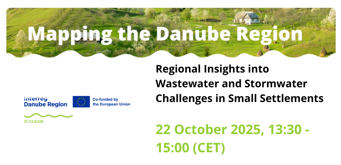 We are thrilled to announce the first in a series of six webinars. Join us on October 22, 2025, from 13:30 to 15:00 CET, for "Mapping the Danube Region - Regional Insights into Wastewater and Stormwater Challenges in Small Settlements."