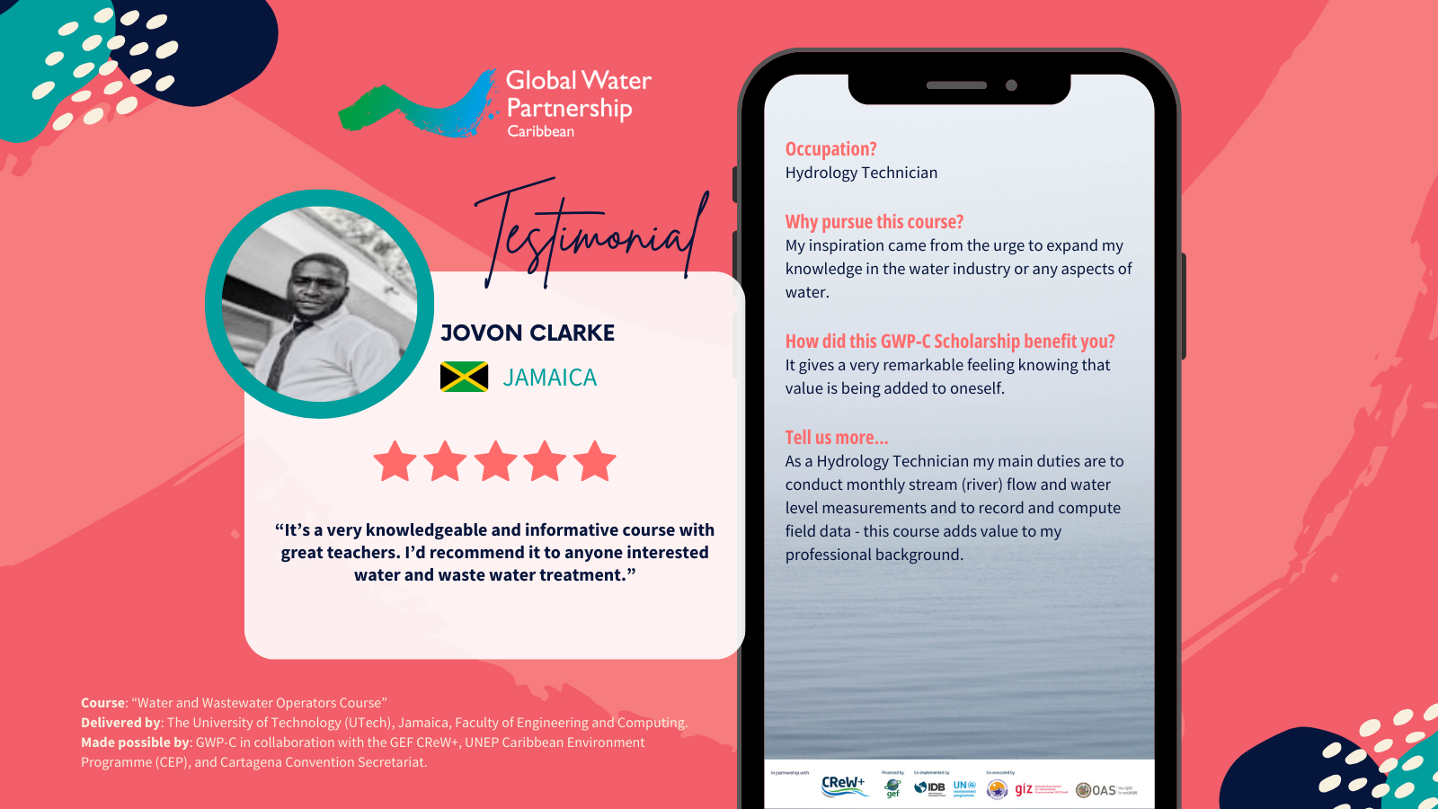 The Global Water Partnership-Caribbean (GWP-C), in collaboration with the GEF CReW+ and UNEP Caribbean Environment Programme (CEP) and Cartagena Convention Secretariat, previously offered a limited number of full and partial scholarships to successful applicants interested in completing a Water and Wastewater Operators Course.